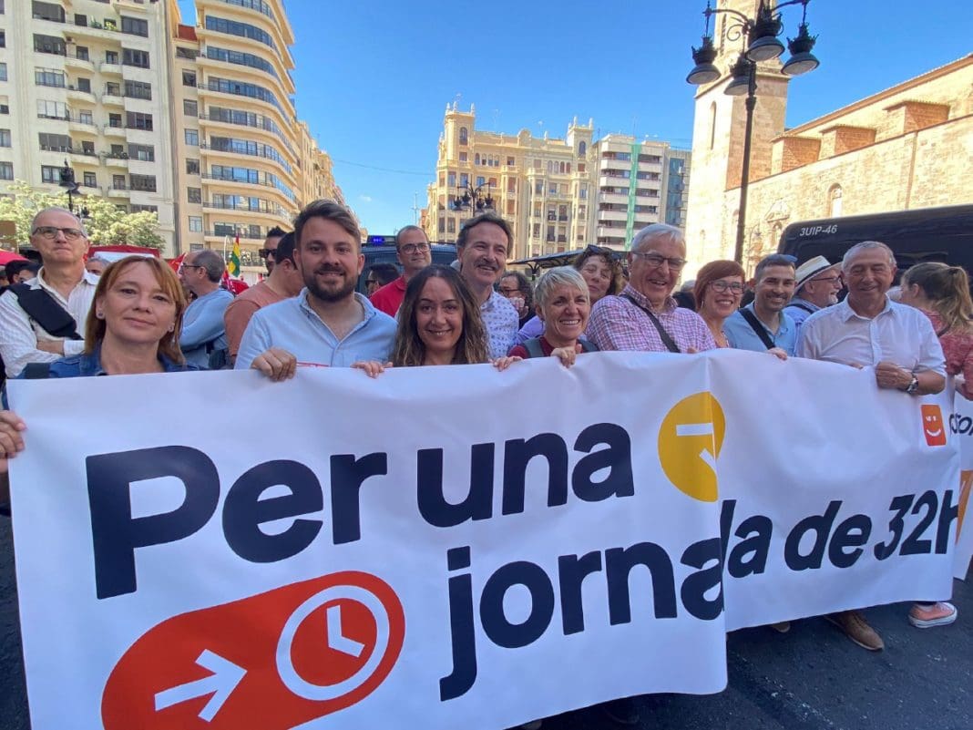 El alcalde de València y candidato de Compromís para revalidar la Alcaldía del Cap i Casal, Joan Ribó, ha participado como cada año en la manifestación del Primero de Mayo, este año con el lema ‘Aumentar salarios, reducir precios, repartir beneficios’, que ha transcurrido entre las plazas de Sant Agustí y de América.