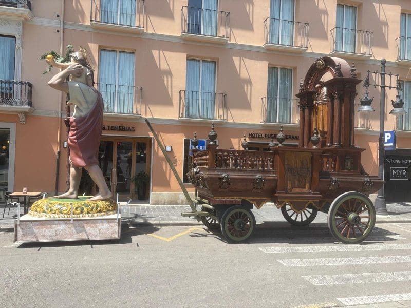 Con el inicio de la fiesta del Corpus Christi, el bestiario, San Cristóbal y las Rocas empiezan a tomar las calles de la ciudad. A primera hora de este viernes, los carros triunfales de ‘La Virgen’, el ‘Santo Cáliz’ y ‘El Patriarca’ salían de la Casa de les Roques para quedar expuestas en las Alameditas de Serranos hasta que esta misma tarde, a las 20 horas, sean trasladadas a la plaza de la Mare de Déu, donde aguardarán hasta el domingo 22.
