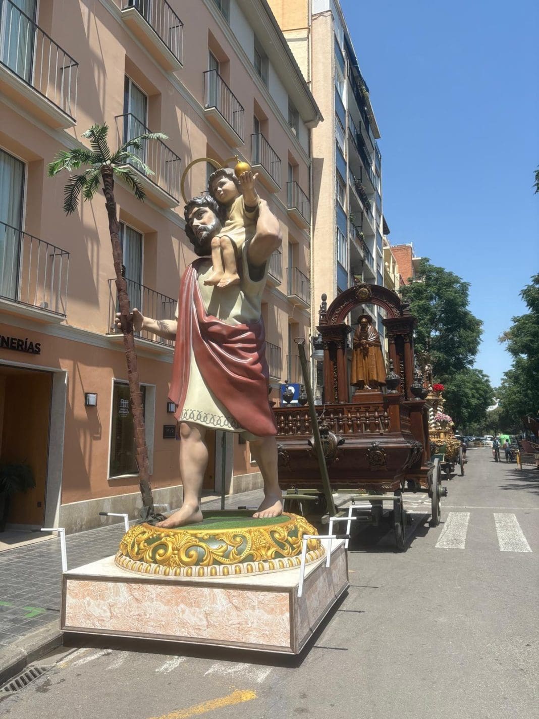 Con el inicio de la fiesta del Corpus Christi, el bestiario, San Cristóbal y las Rocas empiezan a tomar las calles de la ciudad. A primera hora de este viernes, los carros triunfales de ‘La Virgen’, el ‘Santo Cáliz’ y ‘El Patriarca’ salían de la Casa de les Roques para quedar expuestas en las Alameditas de Serranos hasta que esta misma tarde, a las 20 horas, sean trasladadas a la plaza de la Mare de Déu, donde aguardarán hasta el domingo 22.