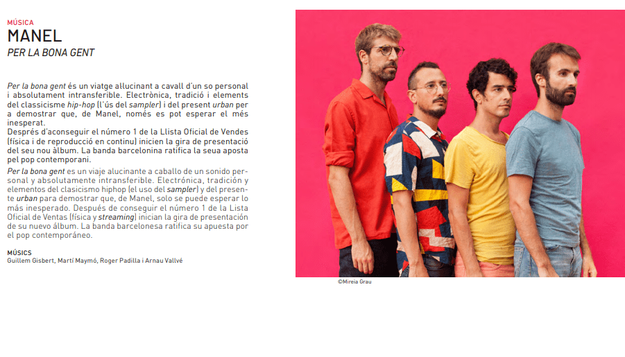Respecte a la resposta del públic en la compra d’entrades, el director d’esta trobada assegura que la gent «té moltes ganes de festival. És més, hi ha espectacles, com el concert del grup Manel, on les entrades estan pràcticament esgotades» , afegeix.