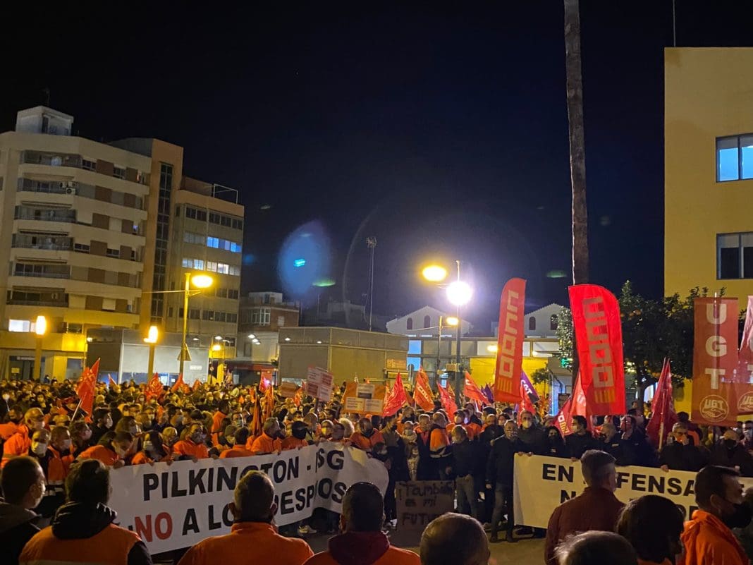 Bajo los lemas ‘Parabrisas no se cierre’, ‘No a los despidos’, ‘No hay futuro sin trabajo’ o ‘El pueblo unido jamás será vencido’ la plantilla de la factoría de vidrio ha gritado contra «la injusticia» de los despidos y el cierre de la línea de laminados. Según han explicado los representantes de los trabajadores la deslocalización de la línea a Italia es solo «la punta del iceberg» del futuro que le espera a la Pilkington y a los más de 400 trabajadores, a la comarca y a la industria del automóvil.