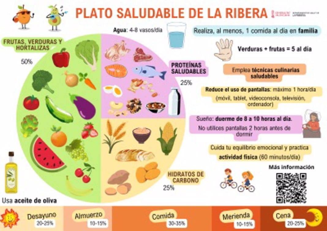 Además, próximamente se distribuirá entre los centros de atención primaria un póster titulado ‘El Plato Saludable de La Ribera’. Este póster ilustra las proporciones recomendadas de alimentos tanto para la comida principal del mediodía como para la cena y se colocará en lugares visibles de las consultas de pediatría en Atención Primaria.