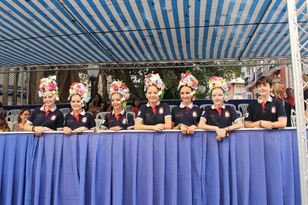 Les Belleses del Foc y sus Dames de Honor desde la tribuna de honor lucían tocados florales para recibir a las comisiones de hogueras y barracas. Al inicio del desfile aprovechaban para hacerse selfies para recordar este emotivo día y posaban en el photocall de la Hoguera Florida Sud, con motivo de su 40 aniversario y, posteriormente saludaban y recibían detalles de algunas de las 89 hogueras y una veintena de barracas.