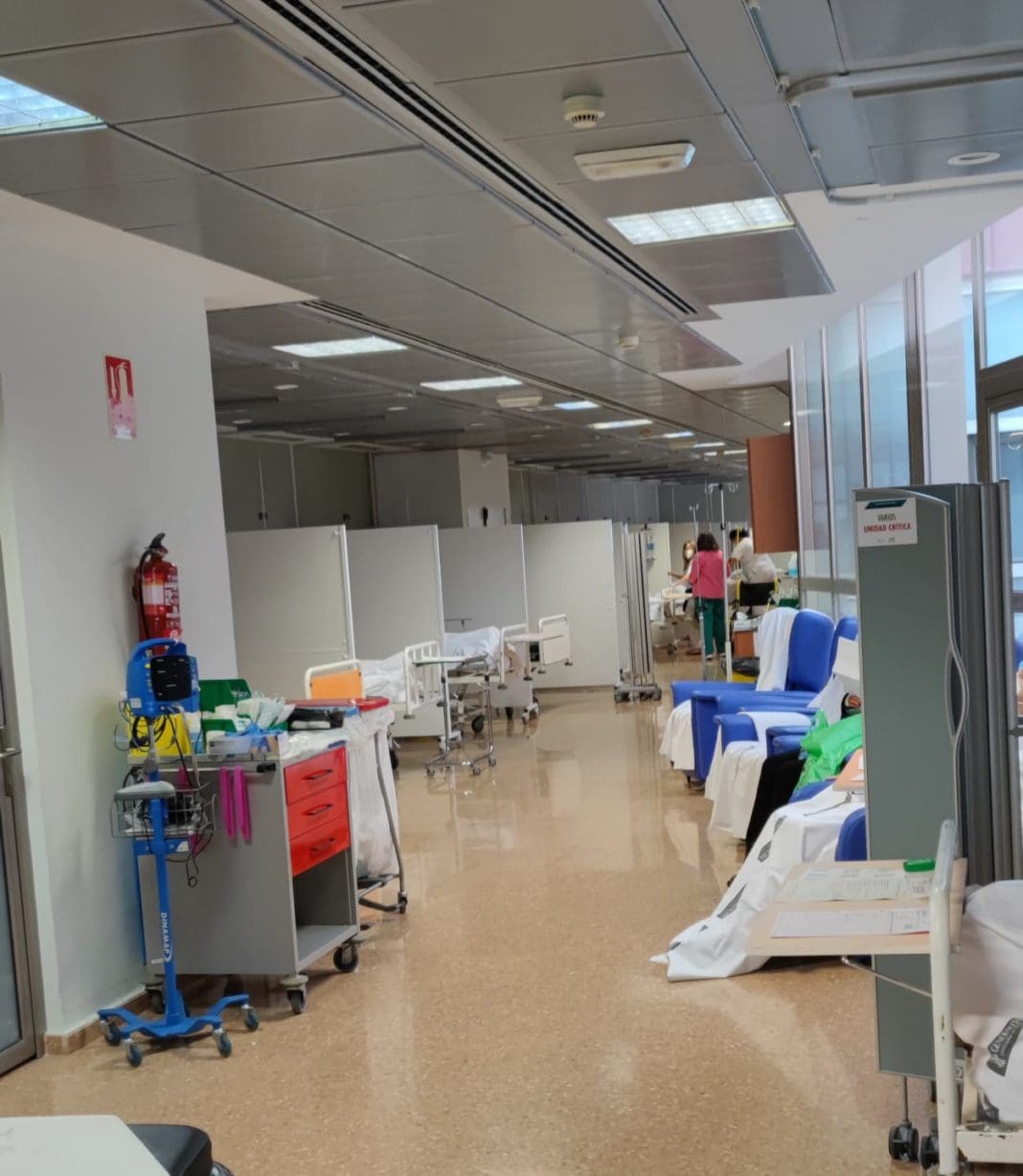El sindicato resume esta situación en que con frecuencia sobrepasa los 60 pacientes al día. Además, aunque fue planificada para adultos, no existe una zona separada para pediatría, con la cual resulta habitual que menores estén en brazos de su padre o madre en un sillón o una cama junto a pacientes adultos. La situación se complica con el ingreso de pacientes postquirúrgicos que deberían de ser atendidos en la Unidad de Recuperación Post Anestésica, donde les trataría personal especializado.
