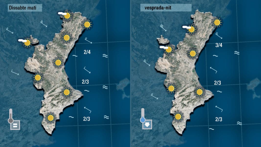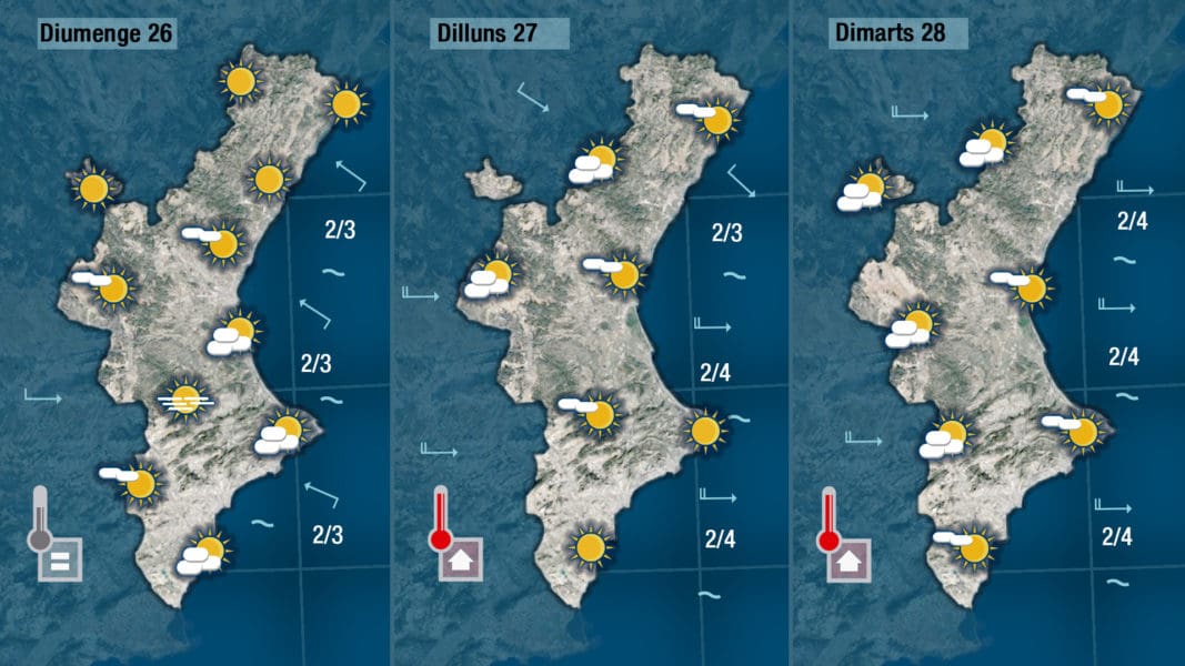 El fin de semana lo pasaremos sin el poniente que se dejará sentir mañana a primera hora pero con el paso de las horas dará el relevo al siroco que de nuevo hará bajar las temperaturas impidiendo que suban más allá de los 20 grados.