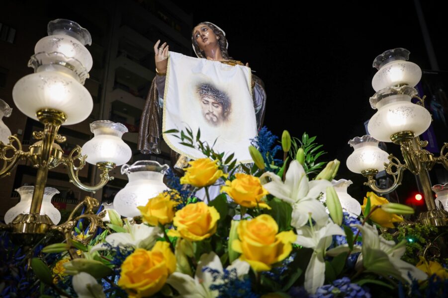Uno de los momentos más esperados del Miércoles Santo ha llegado a las 22.00 horas con el tradicional Encuentro de la Verónica, uno de los actos más emotivos de la Semana Santa torrentina. En él han participado diversas hermandades, como la de la Santa Cena y Caballeros del Santo Cáliz, la de Jesús Nazareno y Simón Cirineo y la Muy Ilustre Hermandad de Nuestra Señora de los Dolores, la Soledad y la Resurrección.