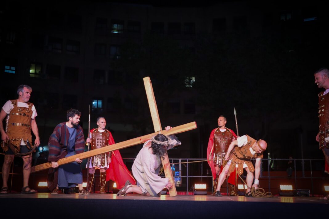 Otro de los grandes focos de atención ha sido la representación viviente de las Tres Caídas de Jesús en el Camino del Calvario, a cargo del GTI Grup de Teatre y con la participación de la Hermandad del Divino Costado de Cristo. El acto ha reunido a numeroso público en escenarios como la Plaza de la Libertad, la calle Azorín y la parroquia de la Sagrada Familia, en una propuesta que ha combinado teatro, escenografía y devoción.