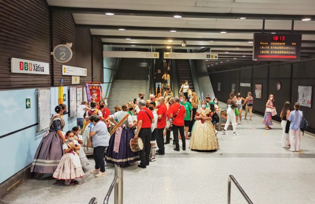 Metrovalencia conecta, con sus 138 estaciones, apeaderos y paradas de seis líneas de metro y tres de tranvía, gran parte de los lugares donde se desarrollan actos festivos, desde las mascletades (Xàtiva, Colón -si se viaja pronto ya que por motivos de seguridad se cierra de 12.30 a 14.30 horas-, Bailén, Ángel Guimerá, Plaça Espanya y Pont de Fusta), hasta la cremà de la Plaza del Ayuntamiento (Xátiva, Colón, Bailén, Ángel Guimerá, Plaça Espanya y Pont de Fusta), pasando por el recorrido de la Cabalgata del Ninot, los castillos de fuegos artificiales (Pont de Fusta, Colón, Aragón, Facultats y Alameda, si se viaja pronto, ya que se cierra por motivos de seguridad dos horas antes del inicio de los castillos) la Ofrenda de Flores a la Virgen de los Desamparados (Pont de Fusta, Colón, Xàtiva, Ángel Guimerá y Plaça Espanya), las corridas de toros (Xátiva, Bailén y Plaça Espanya) y la Nit del Foc (Pont de Fusta, Colón, Aragón, Facultats y Alameda, si se viaja pronto).