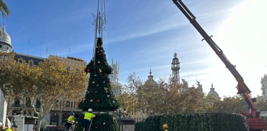 Un tapiz floral y un árbol al estilo ‘Rockefeller Center’, la decoración navideña de València