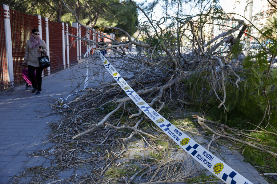 Los Bomberos de València han realizado desde este jueves más de 500 servicios y la Policía Local, en torno a 300 intervenciones, como consecuencia del temporal de viento que afecta a la ciudad y que ha provocado caídas de árboles, farolas y antenas, así como desprendimientos de techos y fachadas, con al menos dos personas heridas.