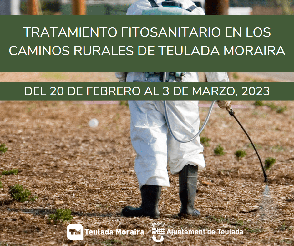 Desde la concejalía de Servicios Generales del Ayuntamiento de Teulada, delegada en José Antonio Bisquert, se va a proceder al tratamiento fitosanitario en los caminos rurales del municipio, del 20 de febrero al 3 de marzo de 2023.