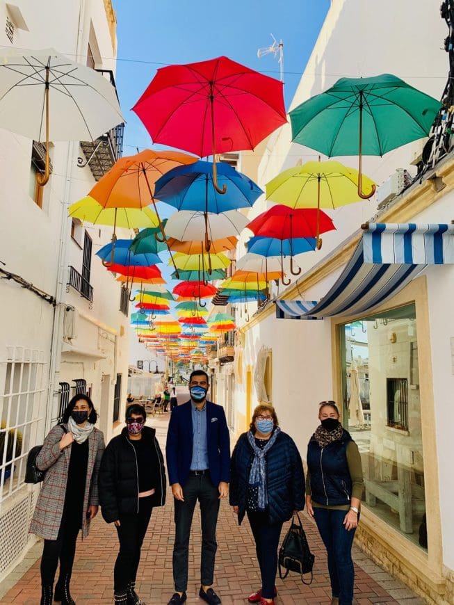 L'Ajuntament de Teulada Moraira a través de la regidoria de Turisme delegada a Adrián Ruiz, ha posat un toc de color al municipi omplint un dels seus carrers amb paraigües de colors.
