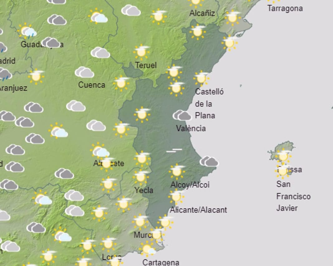 La Comunitat Valenciana vivirá un domingo marcado por intervalos nubosos por la mañana, que tenderán por la tarde a nubosos, probable calima y temperaturas en ascenso, que alcanzarán los 31º en Orihuela y los 30º en Ontinyent.