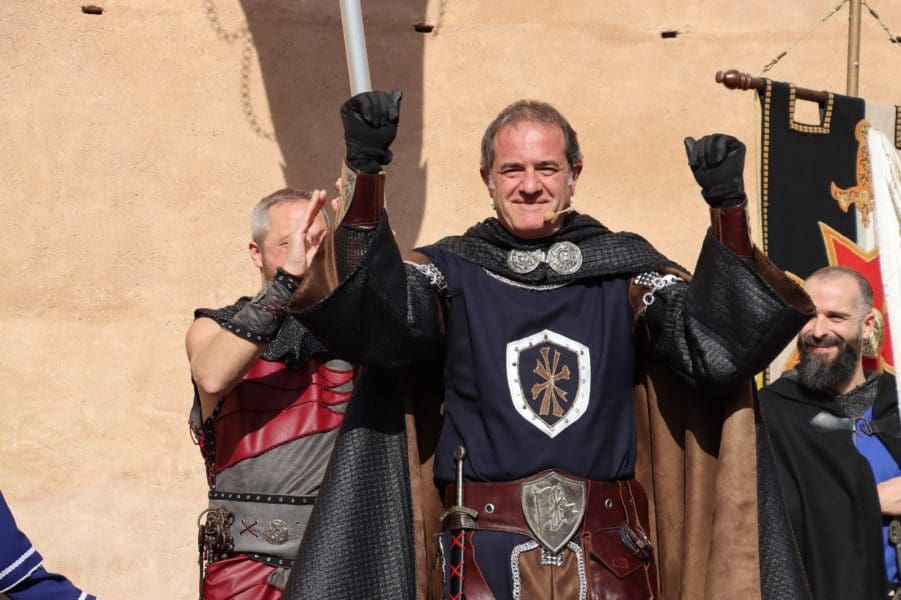 A mediodía, a los pies de la Torre, la emoción era palpable cuando el presidente de la federación, Xavi Santamaría, impuso la insignia de capitanes a a Vicente Bacete, de la Comparsa Abassies, que fue investido como capitán moro, mientras que Miguel García, de la Filà Conqueridors, asumió con orgullo el cargo de capitán cristiano.