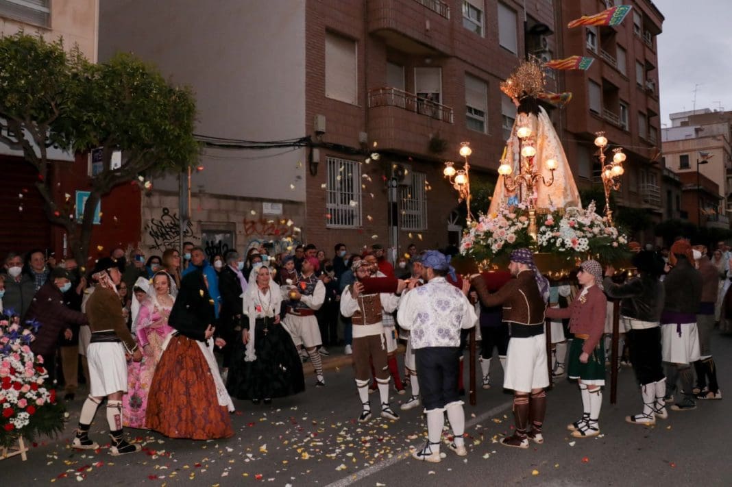 El recorrido empezó desde el barrio La Cochera, donde la comisión sacó a la imagen de la Virgen para acompañarla en procesión hasta llegar a la parroquia de la Asunción, volviendo a su hogar después de haber recibido el homenaje y la admiración del mundo fallero.