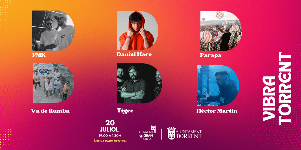 Este sábado, 20 de julio, la ciudad de Torrent se prepara para vibrar al ritmo del festival Vibra Torrent. Un tardeo para los más jóvenes que tendrá lugar en el Ágora de Parc Central, de 19:00 horas a 1:30 horas.