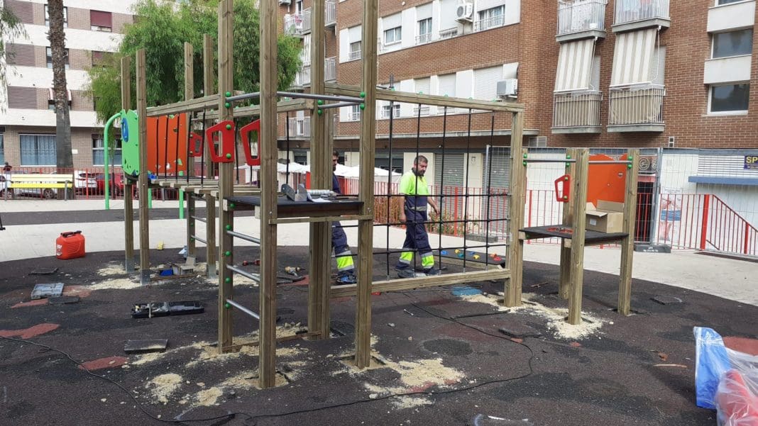 Esta misma semana, el Ayuntamiento ha comenzado a instalar un conjunto multijuego homologado, con dos torres, pasarela elevada, juego de trepa, rampa, tobogán y columpio.