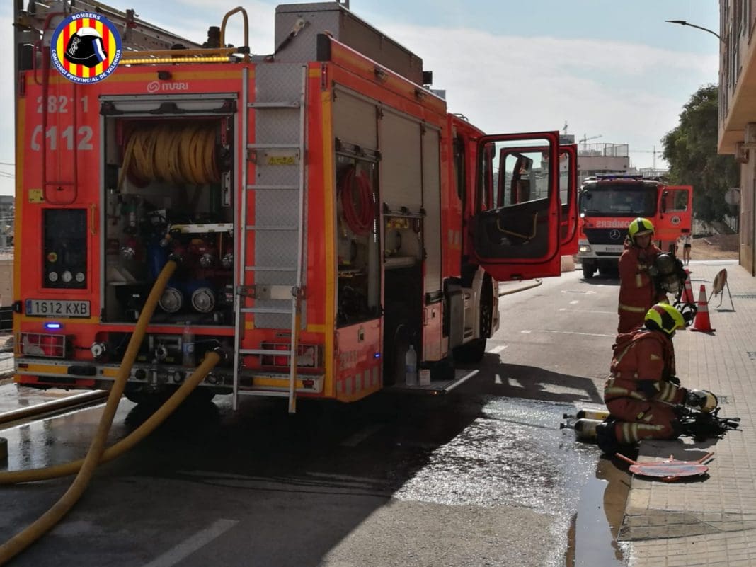Los hechos se han producido a las 12:42 horas en las proximidades de la Calle Mariano Benlliure de Burjassot, cerca del metro. El fuego se habría producido mientras trabajaban unos operarios, y uno de ellos ha tenido que recibir asistencia sanitaria.