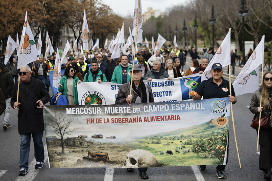 La convocatoria parte de asociaciones independientes valencianas integradas en Unaspi, que agrupa a colectivos del sector primario. Sus protestas señalan al acuerdo UE–Mercosur como una amenaza para el campo al permitir la entrada de productos de terceros países con estándares diferentes y precios más bajos, un desequilibrio que, a su juicio, presiona a la baja la rentabilidad de las explotaciones locales. El rechazo al tratado se enmarca, además, en un malestar más amplio por la carga burocrática y por recortes vinculados a la Política Agrícola Común.