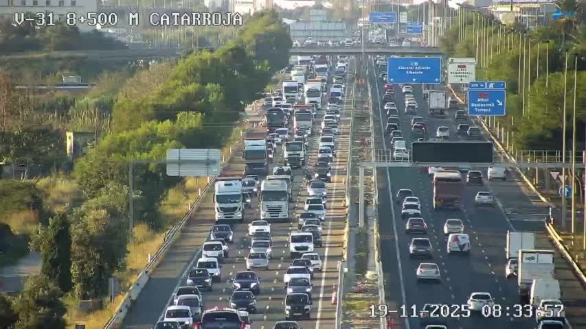 Más allá del siniestro, la hora punta agrava las retenciones habituales en varios corredores principales. La situación es especialmente densa en la A-7, donde se acumulan nueve kilómetros de tráfico lento entre Museros y Cruz de Gracia sentido Alicante.