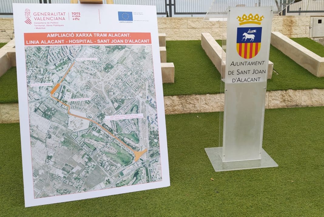 Este matí Jaime Albero, alcalde de Sant Joan, ha presentat el projecte d’ampliació del recorregut del Tram que unirà el municipi amb la zona nord d’Alacant i els hospitals de totes dos localitats. A l’acte han assistit membres de l’equip de govern de Sant Joan, Josep Llin, director del projecte i Arcadi España, conseller d’Obres Públiques i Mobilitat. Ha tingut lloc en l’entrada de Benimagrell.