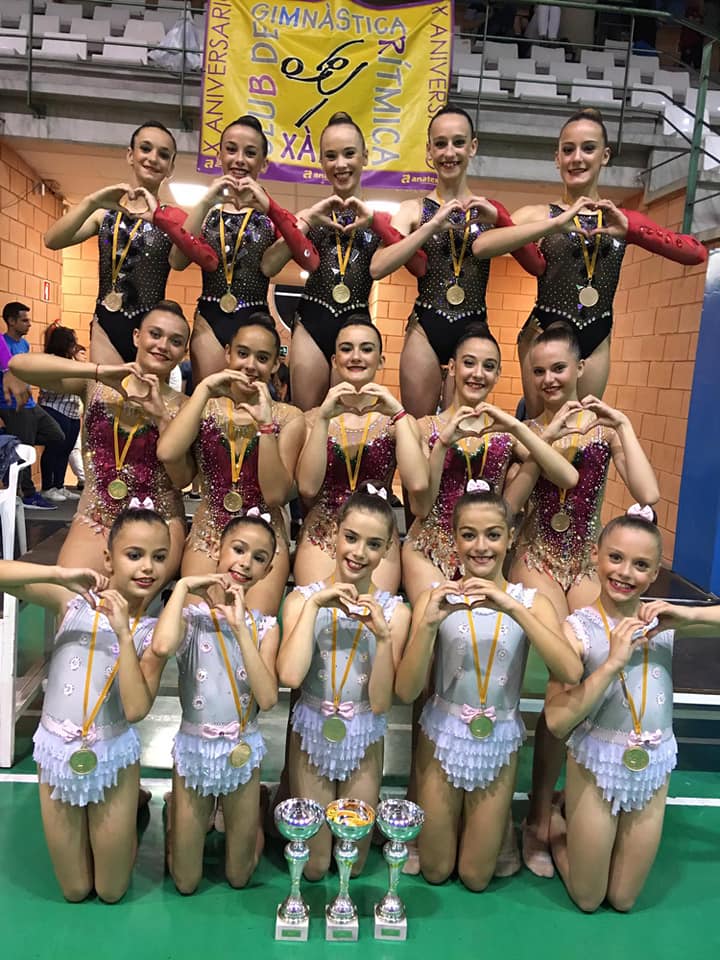 La Fase Autonòmica del Trofeu Comunitat Valenciana de Conjunts, que es va disputar el passat dissabte 8 de juny a Xàbia, va concloure amb tres ors per a tres equips del Club Esportiu Gimnàstica Almussafes. Les joves d’Aleví N1, Infantil Absolut i Juvenil Absolut es van alçar amb la victòria veient com l’esforç i la constància de tot el curs han tingut el seu recompensa.