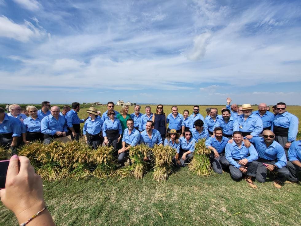 La secretaria autonómica de Turisme, Cristina Moreno, ha asistido a la jornada de este lunes en Sollana, donde en pleno parque natural de la Albufera el grupo de cocineros y gastrónomos, con su tradicional faja y su corbella, han segado el arroz junto a los agricultores de la Albufera. Posteriormente, han podido disfrutar de arroces elaborados por chefs de la ciudad y de los tradicionales cantos de los arroceros (albaes), así como de una jornada debate sobre el papel del arroz en la gastronomía de tradición y de vanguardia.