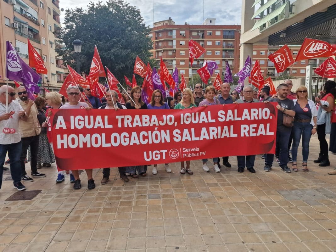 La Federació de Serveis Públics de UGT PV ha instado esta mañana a la Vicepresidenta segunda y conselleria de Servicios Sociales, Susana Camarero, a cumplir con el acuerdo firmado en noviembre de 2022 con el anterior Gobierno para lograr la equiparación salarial del personal de los servicios sociales con las retribuciones de las empleadas y los empleados públicos.