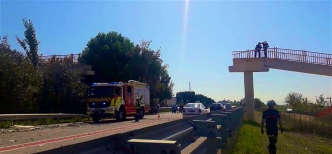 Un camió grua derroca una passarel·la per a vianants a la CV-500 al Saler