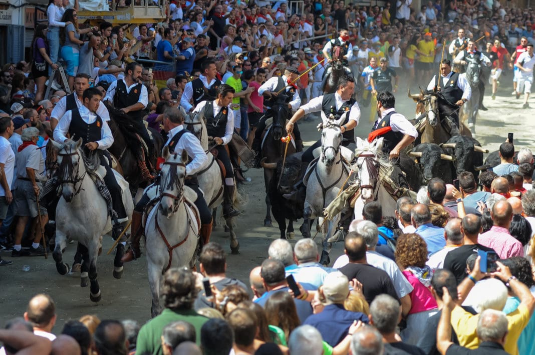 La primera Entrada de Bous i Cavalls de Segorbe de 2019 ha tingut una duració d’un poc més d’un minut i ha sigut una mica accidentada. Un dels sis bous hi ha cornejat al cavall Orgullós del cavallista Pablo Fortea i el cavallista Baldomero ha caigut.