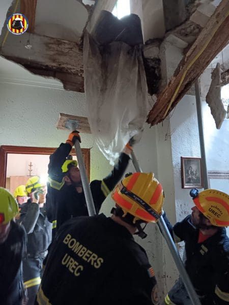 El aviso se ha recibido sobre las 13.04 horas y hasta el lugar de los hechos se han movilizado bomberos de Alzira y la Unidad de Rescate en Emergencias y Catástrofes (UREC) del Consorcio, que han realizado un apuntalamiento en la estructura del inmueble.