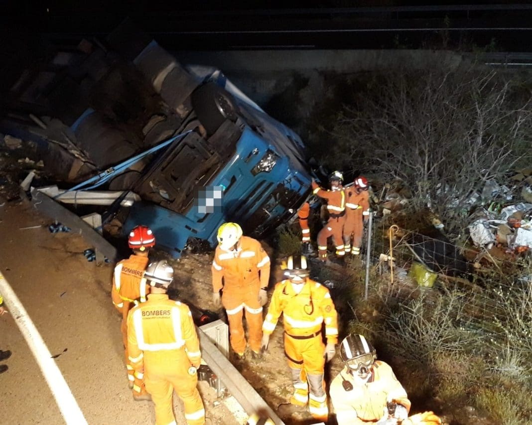 Un home de 50 anys va resultar mort i un altre ferit com a conseqüència d’un accident de trànsit amb eixida de la via d’un camió frigorífic en la A-7.