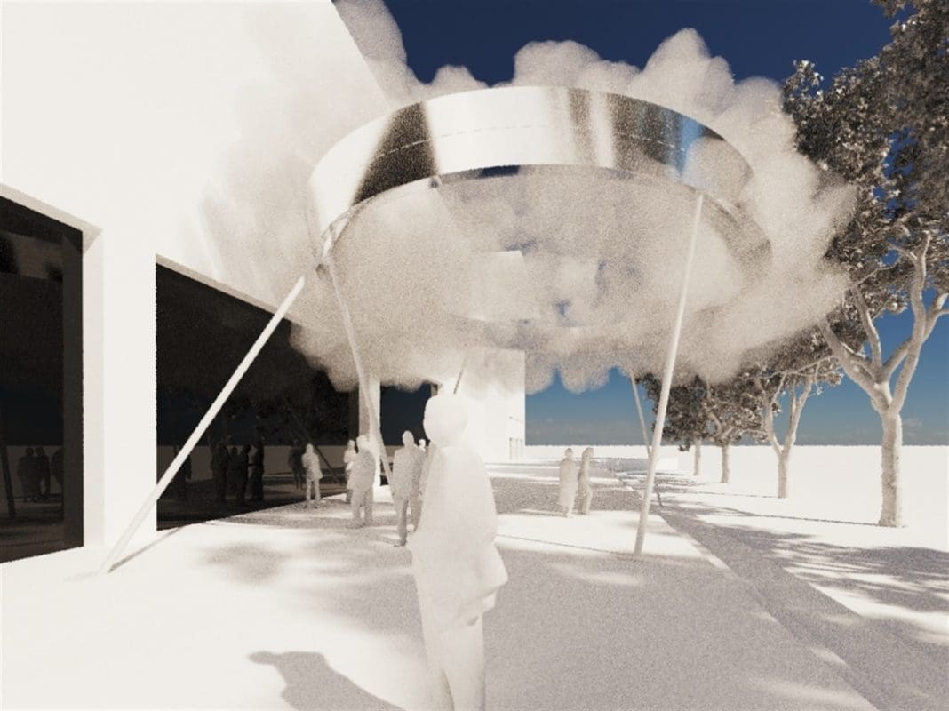 Una assemblea podrà decidir quan plou sobre l’esplanada de l’Institut Valencià d’Art Modern (IVAM). Aquesta és una de les idees que porta la instal·lació que presidirà l’espai obert a l’entrada del museu, ‘Sota el núvol d’estiu’, un núvol artificial ideat pel col·lectiu d’arquitectes Aranea que, a força de vapor d’aigua generarà frescor i fins i tot pluja per a combatre el calorós estiu de València.