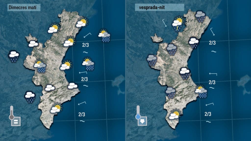 Calima a primera hora, temperaturas nocturnas bascosas y nubes más compactas por el interior que de vez en cuando pueden dar chubascos débiles e incluso alguna tormenta pero las cantidades de lluvia que puedan dejar no serán de gran importancia.