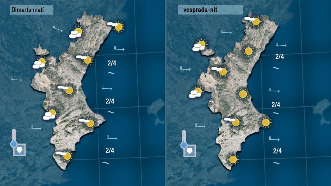 El poniente soplará de forma continuada mañana martes haciendo correr las nubes de poniente a levante. Las temperaturas quedarán un par de grados más bajas.