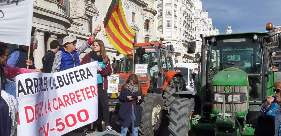 Una marxa de tractors, furgonetes i motos ha inundat el matí d’este divendres el centre de València per a expressar el seu rebuig al pla de pacificació de la CV-500, que, segons denuncien, «s’ha fet sense escoltar a la gent». En la protesta han participat veïns, agricultors, hostelers i comerciants del Palmar, El Perellonet, El Perelló, Sueca, Mareny de Barraquetes i d’altres punts de l’entorn de la Devesa del Saler i del parc natural de l’Albufera.