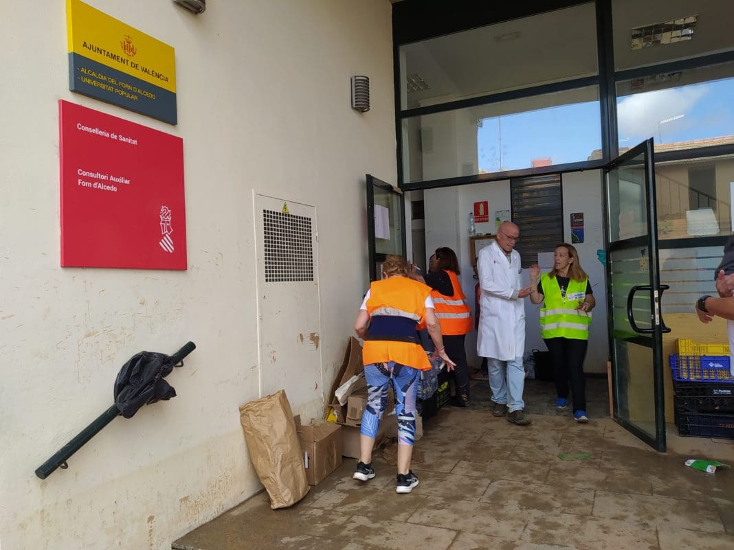 En la alcaldía pedánea del Forn d’Alcedo, por ejemplo, funcionarios y voluntarios organizan y distribuyen el material donado desde distintos puntos de España —alimentos, ropa y calzado— que ya llena la recepción y las plantas superiores. El reparto diario del pan y el traslado a la ciudad con un autobús lanzadera de la EMT se organizan desde las mismas puertas de la oficina municipal, a la vez que los servicios de Limpieza de Residuos Sólidos y Parques y Jardines luchan contra el barro.