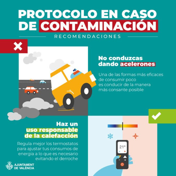 Por último, el Ayuntamiento llama a hacer un uso responsable de la calefacción y de los sistemas de climatización, regulando mejor los termostatos para ajustar los consumos de energía a las necesidades reales. De este modo se evita el derroche energético y se limita la generación indirecta de contaminantes vinculados a la producción de energía, contribuyendo a mitigar el impacto del episodio de contaminación por polvo en suspensión en València.