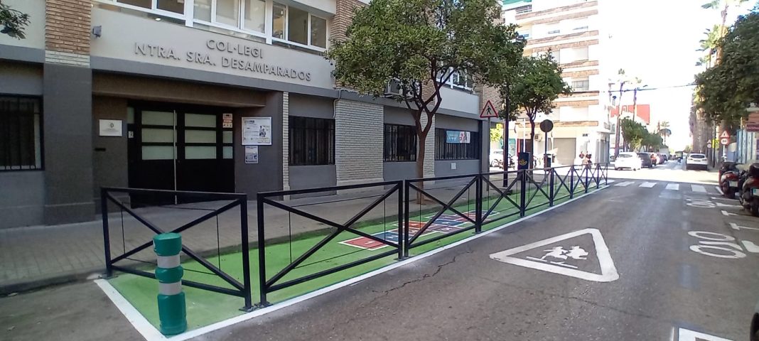 El Ayuntamiento de València ha recuperado 81 metros cuadrados de espacio peatonal en los accesos de los colegios Nuestra Señora de los Desamparados (Nazaret) y Som Escola (Soternes).