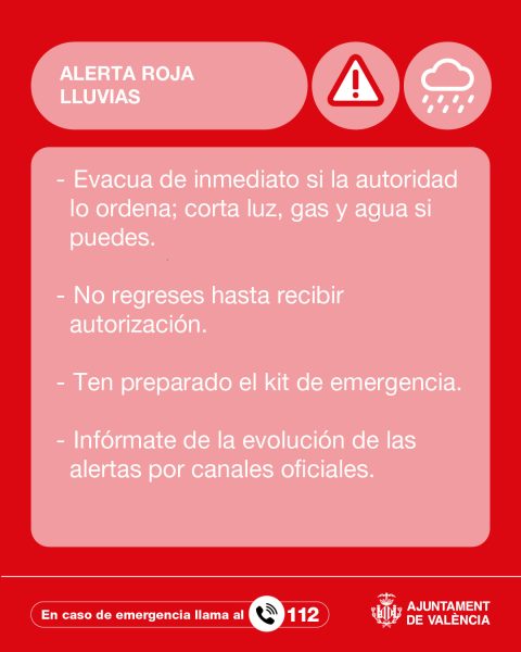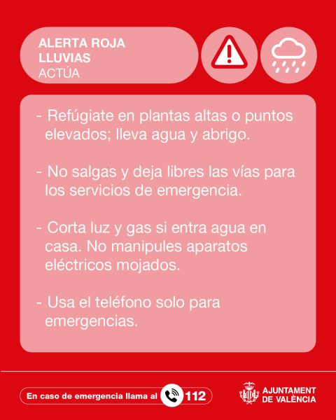 Tras la reunión del CECOPAL por la alerta roja por lluvias y amarilla por tormentas para la ciudad de Valencia activada por el Centro de Coordinación de Emergencias para mañana lunes 29 de septiembre.
