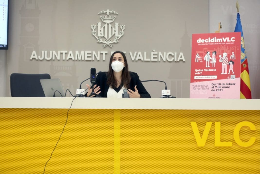 La concejala de participación ciudadana ha resaltado que “a fecha de hoy, ya se han ejecutado más del 75% de las propuestas elegidas por la ciudadanía en las cinco ediciones anteriores de DecidimVLC, inversiones que son una realidad en nuestras calles y contribuyen a hacer de València una ciudad más amable y sostenible”.[:ca]L’Ajuntament de València arranca la fase final de votació dels pressupostos participatius 2020-2021, DecidimVLC. Des de hui i fins al 7 de març la ciutadania podrà votar directament a través de la web decidimvlc.valencia.es als millors projectes per als barris i pobles de València fins a completar els 8 milions d’euros assignats del pressupost municipal de 2021 dedicat a inversions.