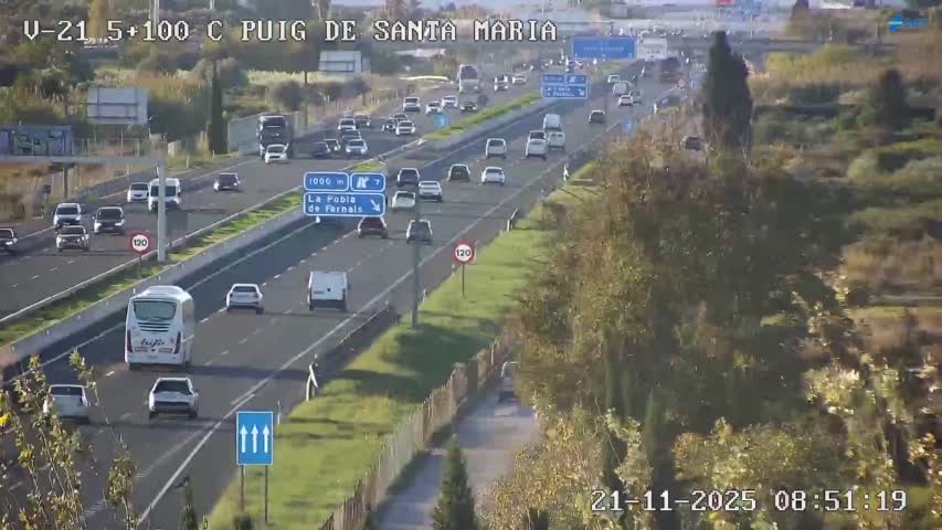No obstante, este viernes 21 de noviembre, el punto más conflictivo es la V-30, que registra problemas en cinco tramos diferentes y en ambos sentidos.
