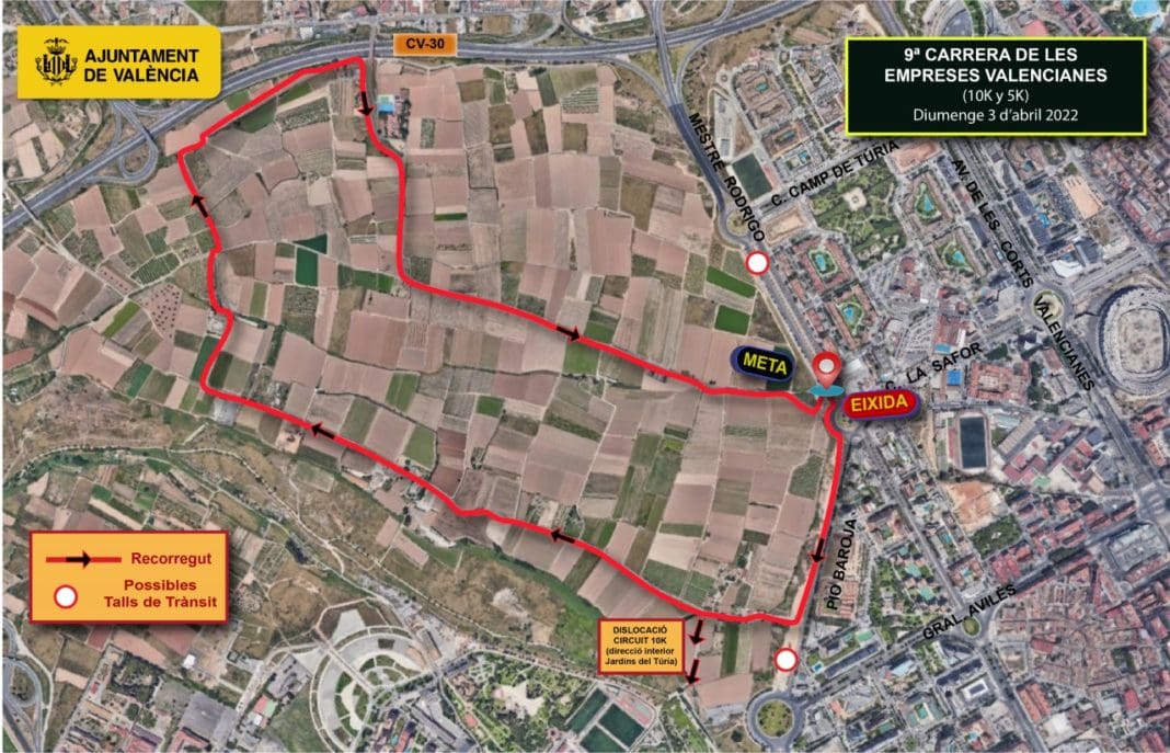 La 5K saldrá de la avenida del Mestre Rodrigo en dirección a la calle Pío Baroja hasta la altura del Parque de Bomberos de Campanar. La carrera seguirá por la Partida de Dalt, los caminos de prolongación de la calle Pare Barranco y de Tragadero, y el de la Acequia de Tormos hasta el edificio de la protectora Modepran, la calle del Pare Barranco, la rotonda de la calle de La Safor hasta acceder a la meta situada en Mestre Rodrigo, en el punto inicial de partida.