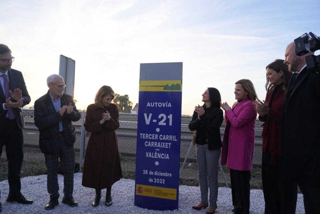 La ministra de Transportes, Movilidad y Agenda Urbana, Raquel Sánchez, ha presidido hoy la puesta en servicio de 6,1 kilómetros (km) de carril Bus-VAO y 5 km de terceros nuevos carriles en la autovía V-21, en la entrada norte a la ciudad de Valencia, acompañada por la delegada del Gobierno en la Comunidad Valenciana, Pilar Bernabé, y alcaldes de la zona.