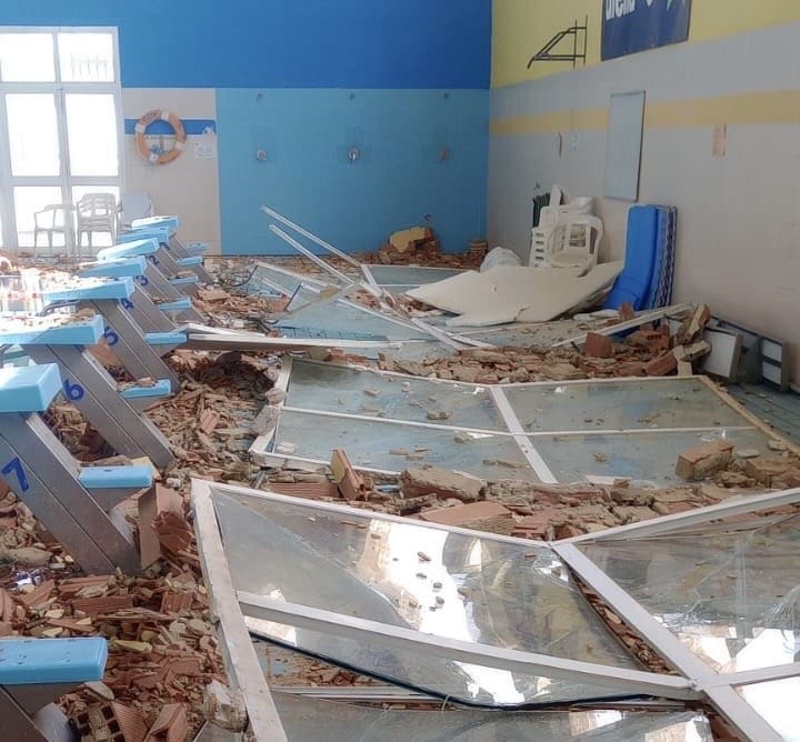 Por otra parte, los servicios de emergencias han desalojado la piscina cubierta del polideportivo de Benimamet por la caída de parte del muro con cristales, aunque ninguna persona ha resultado herida.