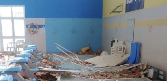 Los bomberos municipales han actuado en diferentes servicios por la caída de árboles y vallas y han desalojado la piscina cubierta del polideportivo de Benimàmet por la caída de parte de un muro con cristales