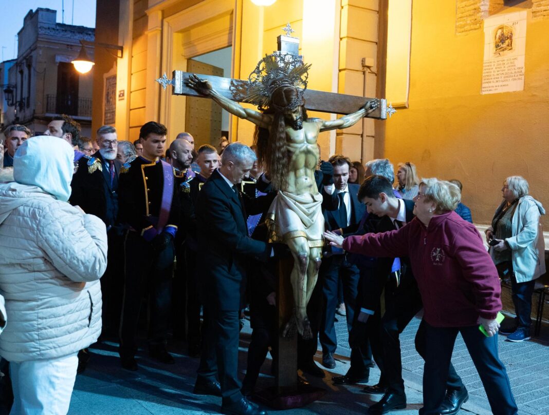 Durante todo el trayecto, hermandades, cofradías y corporaciones desfilan en riguroso orden de Pasión. El cortejo incluye figuras como sayones, pretorianos, longinos o granaderos, que aportan una dimensión escénica y catequética a la representación de los últimos momentos de la vida de Cristo.