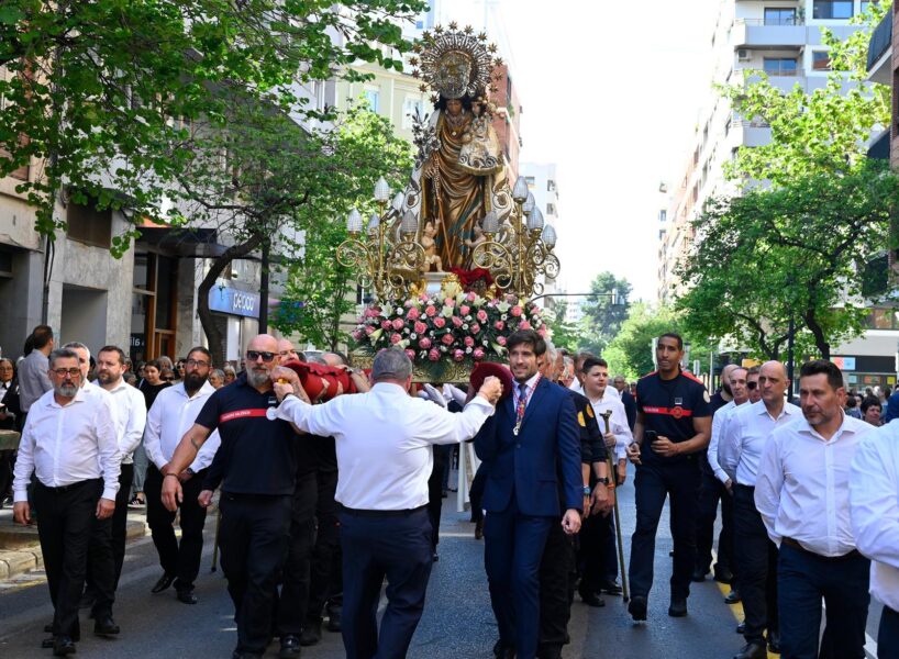 Los bomberos han sido los encargados de portar a hombros la imagen hasta la Iglesia de San Pascual Bailón, donde se ha celebrado una misa. A continuación, la Virgen ha recorrido las calles del barrio en un emotivo encuentro con centenares de vecinos y ciudadanos que han querido mostrar su devoción.