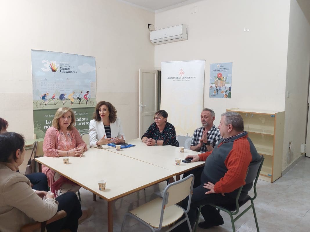 La concejala de Educación, Maite Ibáñez, se ha reunido con los centros educativos, las asociaciones de padres y madres de alumnado (AMPA) y representantes vecinales del distrito de Quatre Carreres, donde se está habilitando la nueva oficina de prevención y reducción del absentismo escolar, que facilitará atención e información a las familias y se ofrecerán charlas de concienciación a padres y madres de alumnado absentista.