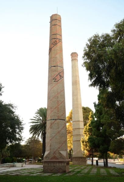 El Ayuntamiento de València ha recuperado dos chimeneas industriales que formaban parte de la zona fabril que tuvo la ciudad a principios del siglo XX en la marginal izquierda del cauce del Turia, entre la Alameda y la avenida de Baleares, construidos en su día para evacuar el vapor que utilizaban al generar energía una antigua destilería y una fábrica de papel.